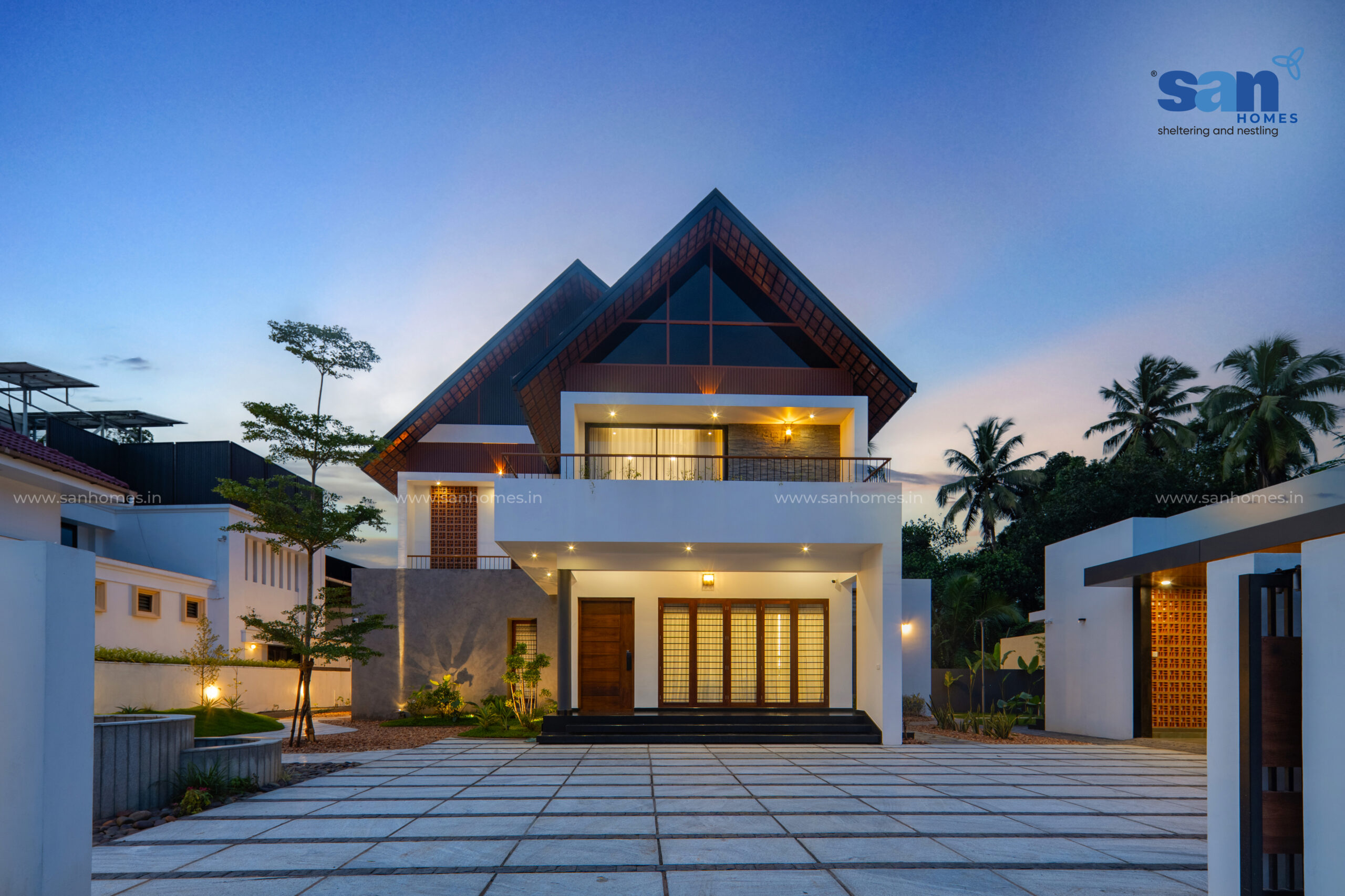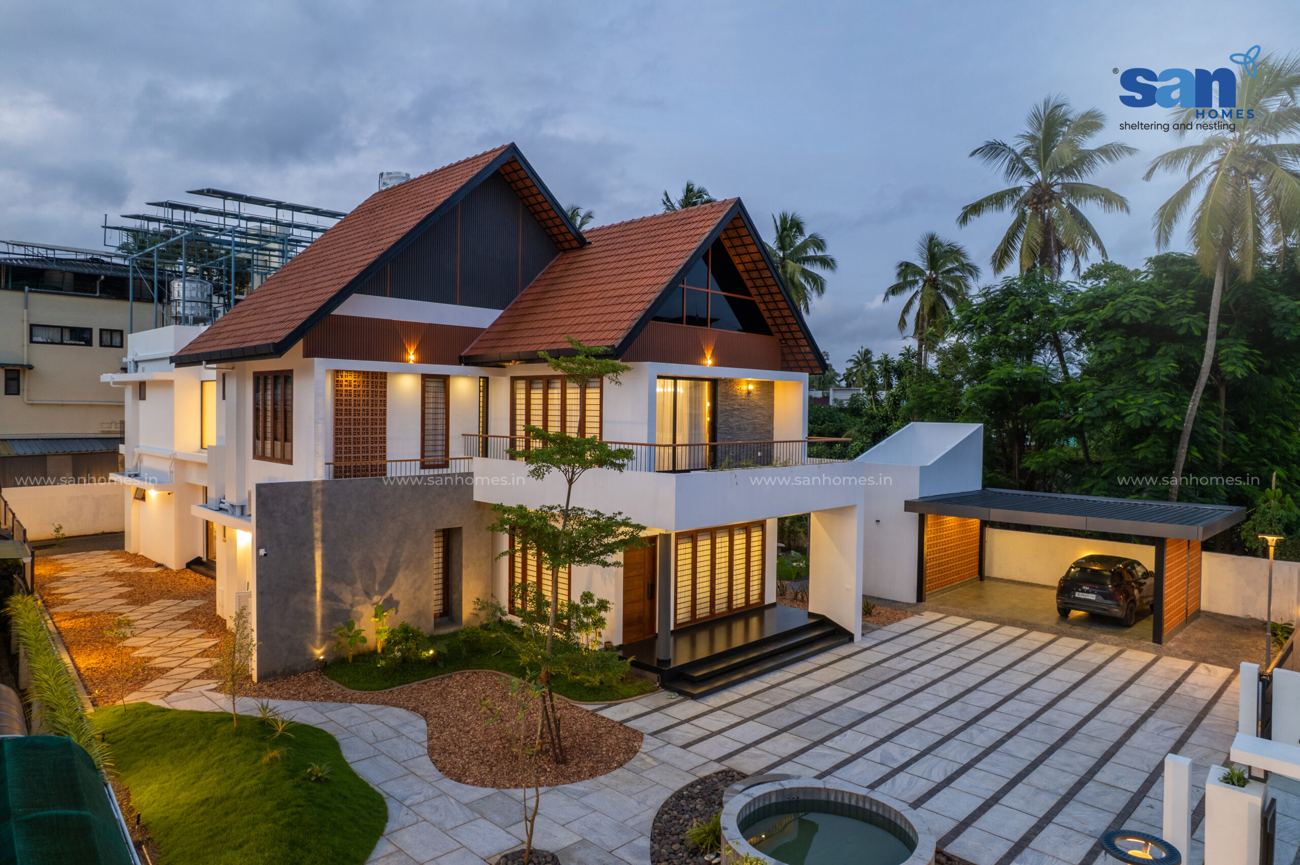 Presenting SAMARA — a home where every architectural detail blends into a harmonious motif, creating a space that truly speaks. It is a spacious 5bhk home located at Maradu Kochi. The house is owned by NRI couple Mr.Subhash and Mrs.Smitha.This modern tropical home has all modern facilities including a lift and a home theatre. The elevation and ambience of the house is elevated with a stunning landscape design.