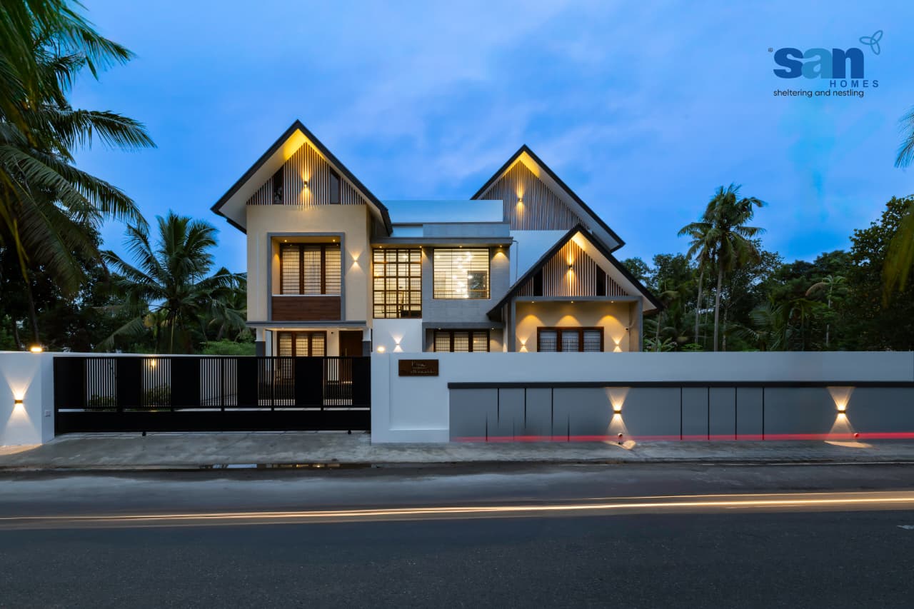 Set in the peaceful surroundings of Paravoor, HIRA is a modern residence that unites spacious design, traditional charm, and refined elegance. Crafted for Mr. Sameer Kasim, the home is more than an architectural achievement, it is a lifestyle statement that values openness, comfort, and timeless beauty. The family envisioned a spacious home that balances modern living with cultural depth. Designed by Concepts Design Studio and built by San Homes Kochi, the residence is expansive, warm, and deeply personal. Every detail from airy interiors that invite natural light to subtle traditional touches woven into the structure, reflects a harmony between past and present. With a plinth area of 2,188 sq.ft on a 10-cent plot, HIRA stands as a symbol of balance: modern convenience coexisting with cultural roots. Sunlit spaces, functional layouts, and elegant finishes transform it into a true paradise of fortune and elegance.